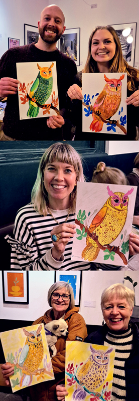 My art classes at The Hollydale, Peckham have been a great hit! Why not join me for the next classes on 25 Feb and 25 Mar? I provide you with the outline, art supplies, guidance and support. All you need to do is book your ticket and buy a drink at the bar when you arrive. February's bird is an Eagle Owl, it's going to be a hoot!